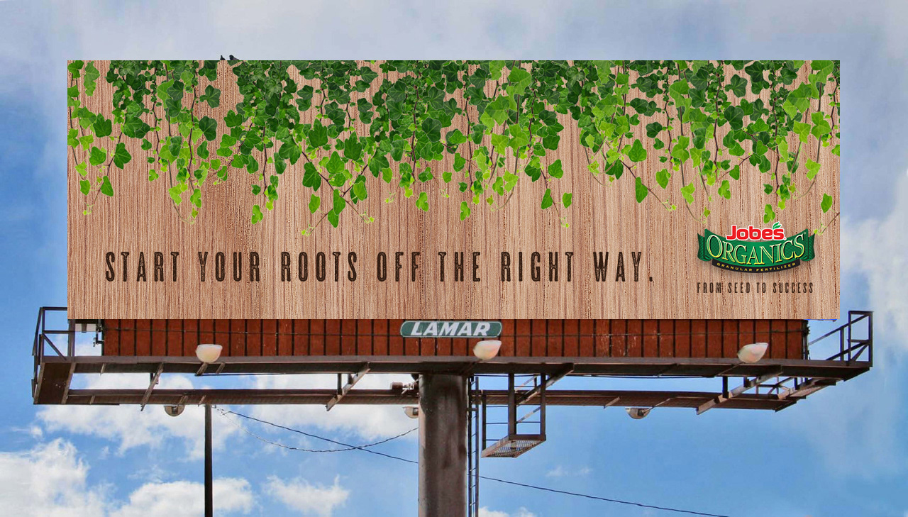 Jobe's Organic Fertilizer is made to satisfy plants' needs. Ad campaign included billboard, print, Instagram layout, and transit advertising.